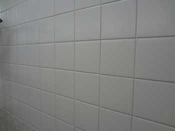 壁は、10センチ四方くらいの安っぽいタイル。→