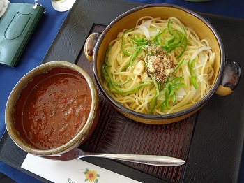 仲間が注文したパスタ。→