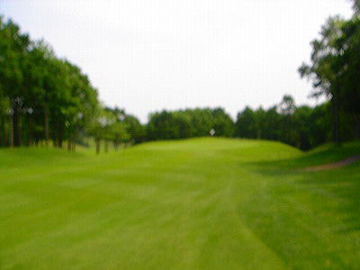 アシリ No.3 309yard Par 4 右ドッグレッグのパー4。 幅はそこそこで、途中まではけっこう平坦です。 セカンドショット地点付近。 (なぜか?写真がピンボケでした!(^^;) この先で、やや下っています。 グリーン右下は、低くなっているので落とさないように。