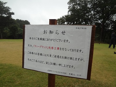 1番ホールは、ティーグランドには、このような網目のスノコ状のような硬いマットが敷いてあり、ペケ。