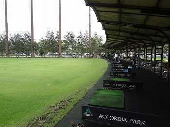 打席の練習場は、クラブハウスからだと、アプローチ練習場の先にあるので、ちょっと遠いというわけ。