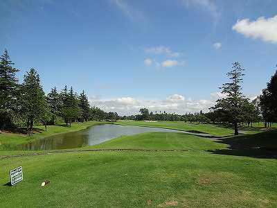 グリーン手前から右へカーブしていて、グリーン手前に大きな池があり、セカンドショットが池越えとなるホールで、なかなかいいホールでした。