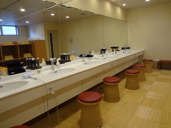 脱衣棚は3段で、同じ縦列に、ほかの人が使用していると、かなり狭くなります。
