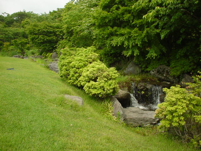 2005年6月12日(日)ラウンド。 場所は静岡県といっても、箱根のすぐ近くにあります。 1992年オープンしたコース。 到着して驚くのは、クラブハウスの素晴らしさです。 エントランス前には、プールのような池があり、緑色に塗られていています。 外壁は茶色っぽく、内装も落ち着いた豪華さがあり、外観、内装とも、オープンして13年たつとは思えないほど、非常にきれいです。 ロビーは、天井が高く、広々としていて、中央に噴水(あまり噴出してません)があり、グランドピアノが置いてあります。 帰り際には、ピアノの演奏していて、自動演奏だと思ったら、生演奏でした! ただ、スタッフに人なのか?おじさんが弾いていて、ちょっと似合わなかったですが・・・。(^^; どうせなら、きれいな、おねえさんが弾いていてほしかったです。 床のカーペットは、けっこうフカフカしています。 1階のロッカールーム、トイレなど、非常にきれいで、文句のつけようがありません。 また、1階の売店正面には、ラウンジがありませんでしたが、営業はしてませんでした。 2階には、レストランとコンペルーム。 レストランの入り口には、高級レストランのように、スタッフが並んでいて、出迎えています。 レストランからの景観が、また素晴らしい。 はるか遠くに、駿河湾が見え、三島市の市外が一望できます。 クラブハウスから、コース側にでると、なんと、階段の横にエスカレーターあり。動いてませんでしたが・・・。 また、クラブハウス内には、エレベーターもあり。 クラブハウスの外(コース側)をでると、パッティング練習グリーンがあり、そのまわりは、池と花に囲まれた庭園のようになっています。 右を見ると、富士山が見えます。→ 奥は三島の市街と駿河湾が見え、いい景観。→ この日は、少しもやっていて、富士山も駿河湾もあまりよく見えなかったのは残念でしたが、空気が澄んでいるときは、さぞきれいなことでしょう! 駐車場は、全部屋根付きで、洗車できるところもあり。 屋根付きといっても、小山をくりぬいて造ってあるみたい。 駐車場の屋上が、アプローチ、バンカー練習場になっていました! ドライビングレンジは、駐車場のある小山の左横にあり、そこへ向かう途中には、小川(小滝)が流れています。 また、ティーグランド周辺などに、たくさんの”つつじ”などの花が咲いていました! これだけ施設が素晴らしいので、コースも期待!! 今回は、アフタヌーンスループレーで、キャディーが不足したため、たまたまセルフプレー(予約時)。 全員が早く到着し、11時10分ごろにINからスタートできました。 通常プレーヤーのハーフインターバルの間にいれてくれます。 ちょうど間が、ぽっかりとあいたのか?前は、誰もいなくて、非常に空いてるように感じられました!(^^ さてコースですが・・・。 コース設計は、富士緑化(株)。設計会社?建設会社?かな? 監修は、岡本綾子。 コースは、山あいに造られているので、段々畑状にレイアウトされていたり、多少のアップダウンがあります。 山岳コースというほどではなく、丘陵林間コースといったところ。 ティーショットは、やや打ち下ろしで、クリーンが砲台形になっていて、セカンドショット以降はやや打ちあげ!というようなホールが多いです。 今回は、レギュラーティー(ブルー):6355ヤードからラウンド。 ほか、バックティー(ブラック):6878ヤード、フロントティー(ホワイト):5892ヤード、レディースティー(レッド):5363ヤード。 ティーマークは、”誕生鬼”という鬼を、陶器で造ったもの。→ このティーマークは、1番、10番は全部ありますが、あとのホールは、バックティーのみ。 「”鬼”を見方につけてプレーするように・・・・」というようなことが、ロビーの売店のあたりに掲示してありました。 レギュラーティーからは、ショートホールなど、けっこうしっかり距離があります。 また、ショートホール以外は、グリーンが砲台形で、かつ、やや打ち上げになるホールが多いので、残り距離が長めになります。 ←12番ホール。 各ホールは、全体的に、広くなく、林の木が、けっこう狭めています。 ボールのランディングエリアが、けっこう狭いホールが多いといえます。 OBはありますが、ショートホール以外に、特設ティーはありませんでした。 ←13番ホール。 OUT、INとも、池やクリークがないホールは、けっこうレイアウト的に平凡で、あまり印象がありません。 全体的なレイアウトとしては、それほどいいとは思えず、まあまあか、普通といったところ。 砲台形グリーンが多いので、アプローチの難易度は、けっこう高くなっています。 ←16番ホール。 しかし、クリーク、滝があるホールがあり、花がたくさんあり、箱庭のようなホール、また駿河湾を望め、富士山も見える!というように、コース内の景観は、非常にいいホールがあります。 ただ、高圧線の鉄塔があり、景観を損ねているのはもったいないです。 ←2番ホール。 しかし、