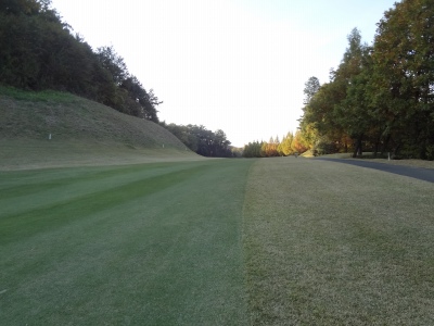 フェアウェイの状態は、多少のディボット跡がありましたが、雑草はなく、芝がハゲているようなところはあまりなく、そこそこ。