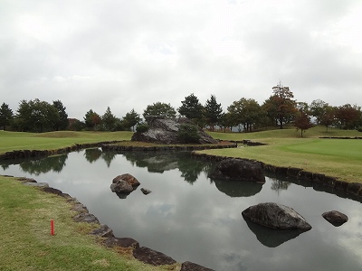 左グリーン手前にある池。