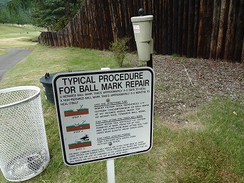 ほかに、グリーン上のボールマーク修復を促す「ボールリペア」の看板も全部英語のアメリカのものを使用。