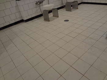 浴室の床はや壁は、15センチ四方くらいのタイル。