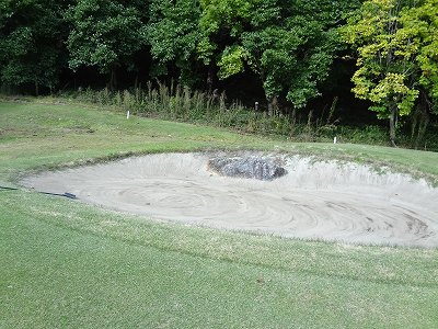 そのバンカーが、砂が少なく表面だけで、すぐ下が泥のように硬いので、バンカーに入れてひどい目にあったのでした・・・。(^^;