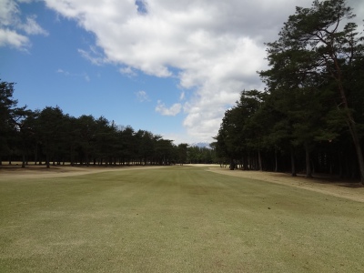 フェアウェイは、途中少し盛り上って高くなっているところがあり、その先は、ゆるやかに下っています。