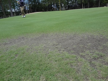 更新作業は仕方としても、時期的に、まだ新しい芝が生えてないことと、グリーンがエアレーション中だったことを差し引いても、ちょっと残念な状態でした。